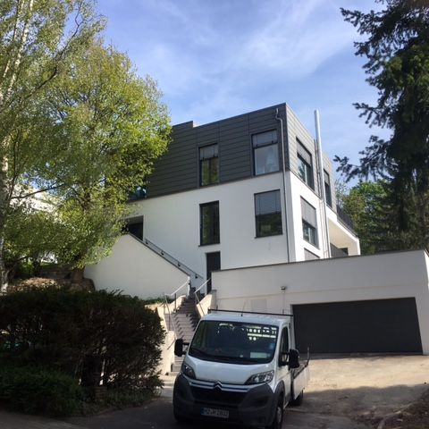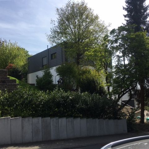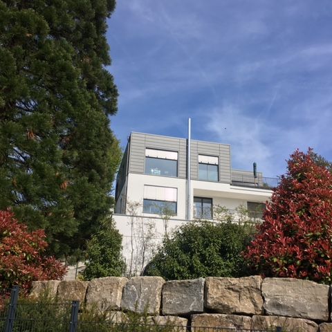 Das Wohnhaus wurde mit einem Obergeschoss, mit großzügiger Südwest-Terrasse aufgestockt. Die Aufstockung erfolgte im Rahmen der zulässigen bauordnungs- und planungsrechtlichen Bedingungen.